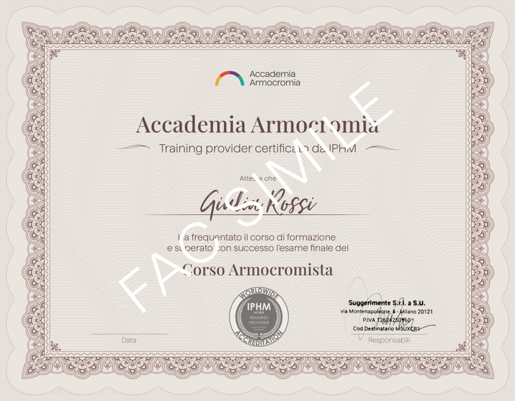 Sì, riceverai l’attestato di consulente di armocromia riconosciuto a livello europeo da IPHM.
